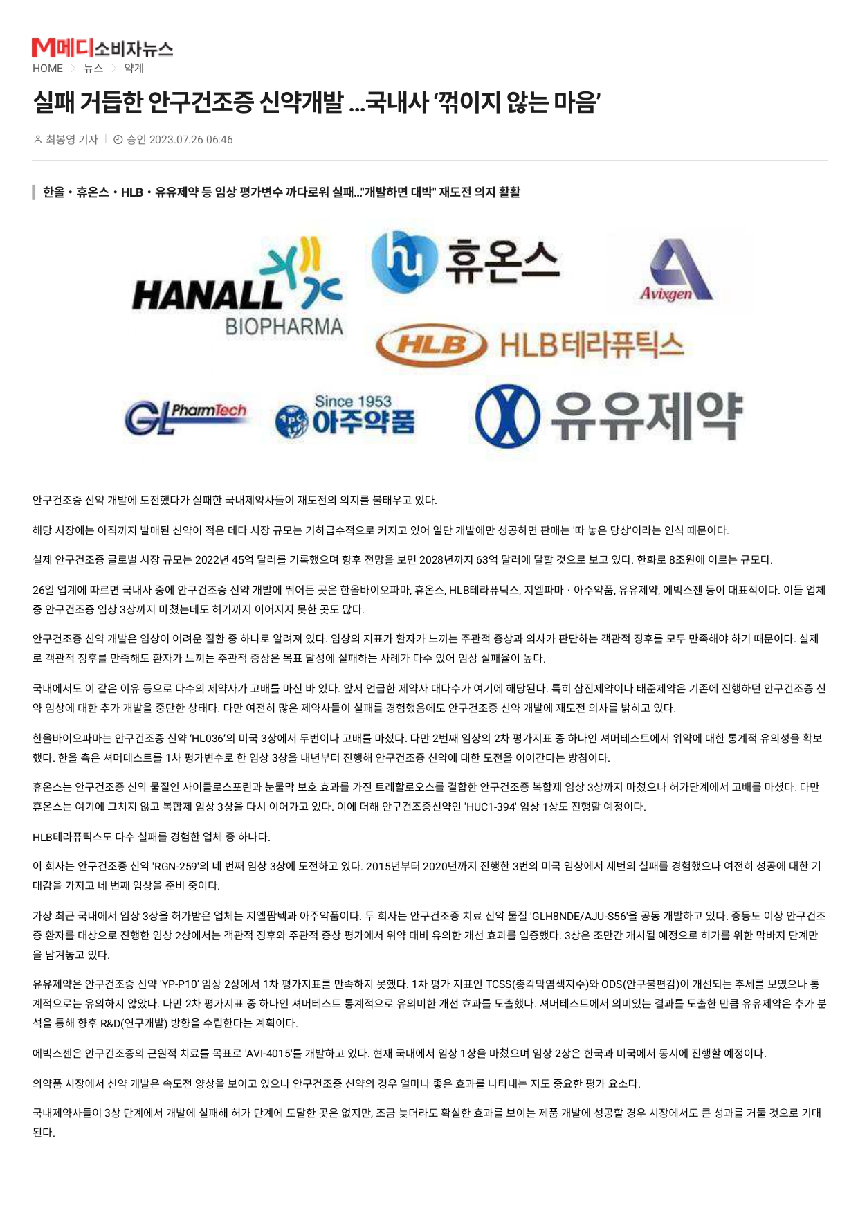 원문기사링크 : 실패 거듭한 안구건조증 신약개발 …국내사 ‘꺾이지 않는 마음’ < 약계 < 뉴스 < 기사본문 - 메디소비자뉴스 (medisobizanews.com)