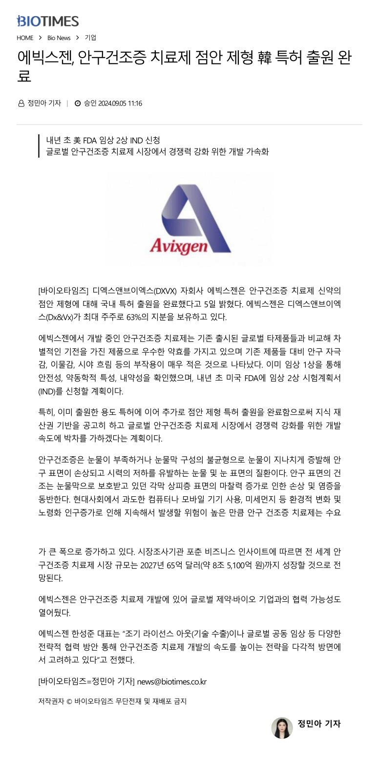에빅스젠, 안구건조증 치료제 점안 제형 韓 특허 출원 완료